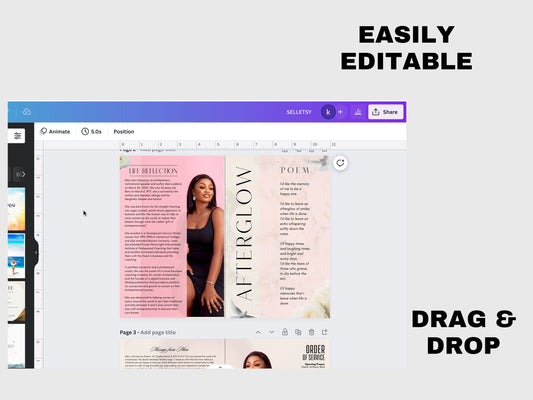 5.5"x8.5" BOOKLET Memorial program (8 pages)| Rose Style Funeral Program |Celebration of Life |Keepsake |Digital Download |Canva Template
