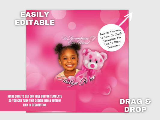 PINK PINBACK Template,Full Color| Personalized Funeral Buttons|Pinback Button Template|Keepsake Pin Backs Template
