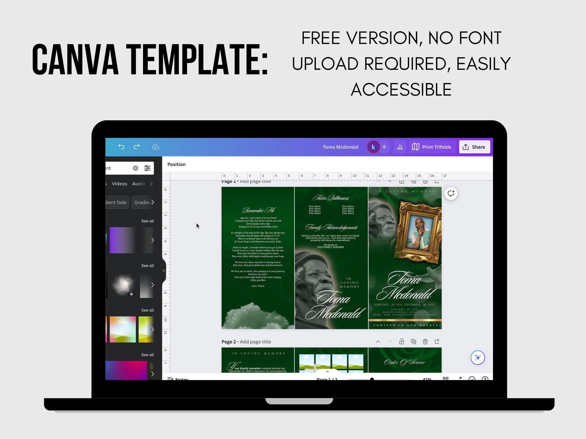 Create a fitting and memorable tribute to your loved one with this creative Funeral Program Canva Template. Order now and receive instant access to the template after purchase.