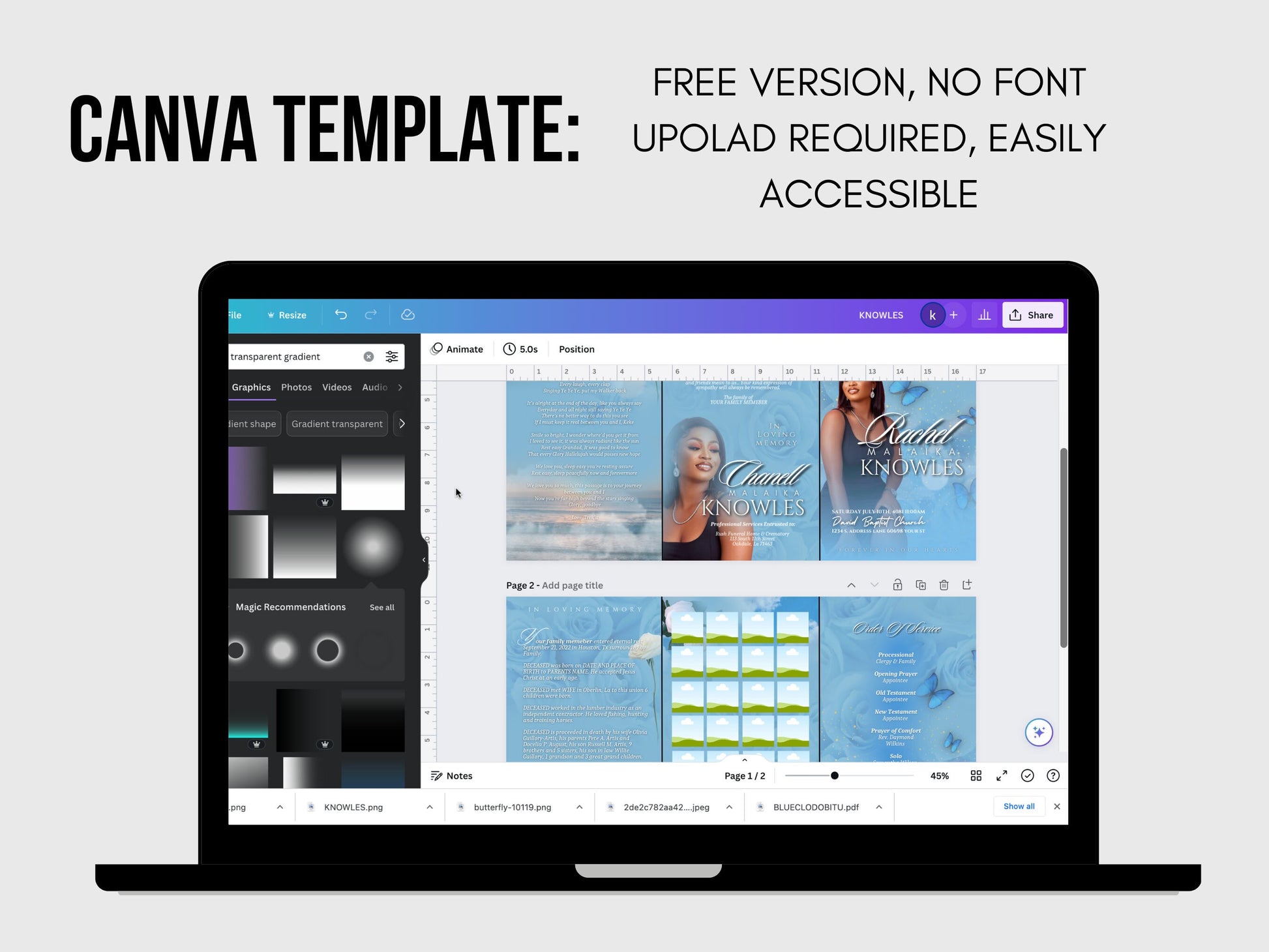 Create a fitting and memorable tribute to your loved one with this creative Funeral Program Canva Template. Order now and receive instant access to the template after purchase.
