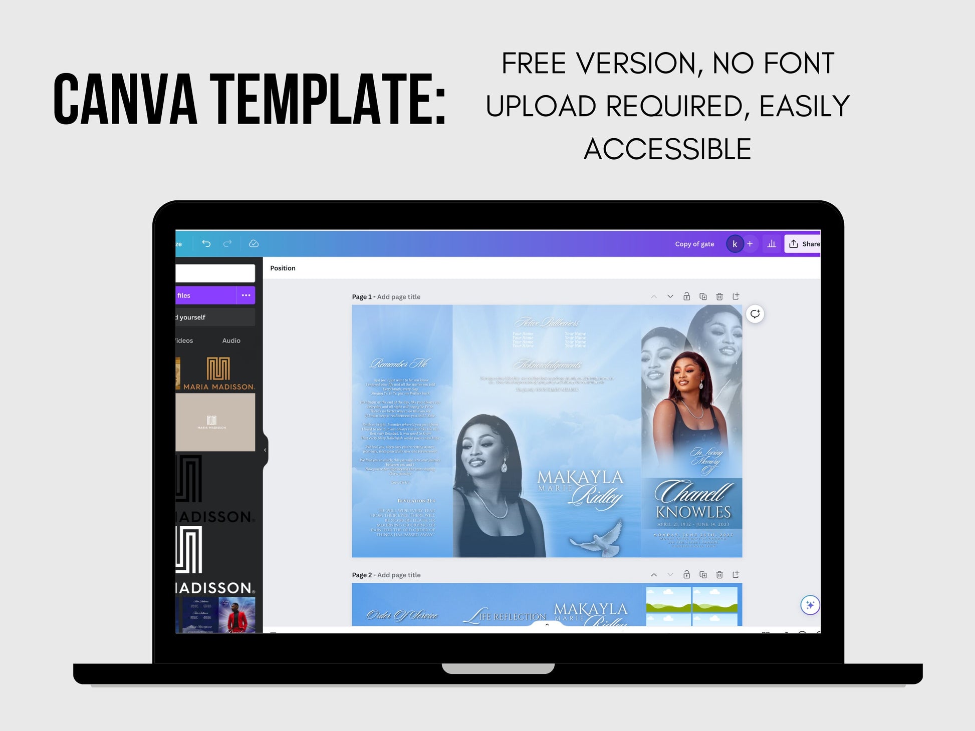 Create a fitting and memorable tribute to your loved one with this creative Funeral Program Canva Template. Order now and receive instant access to the template after purchase.