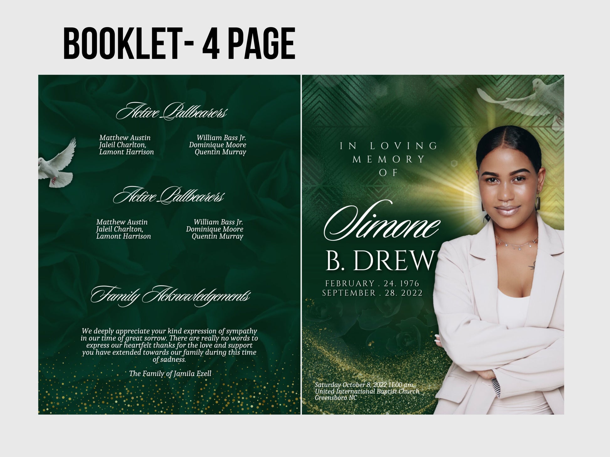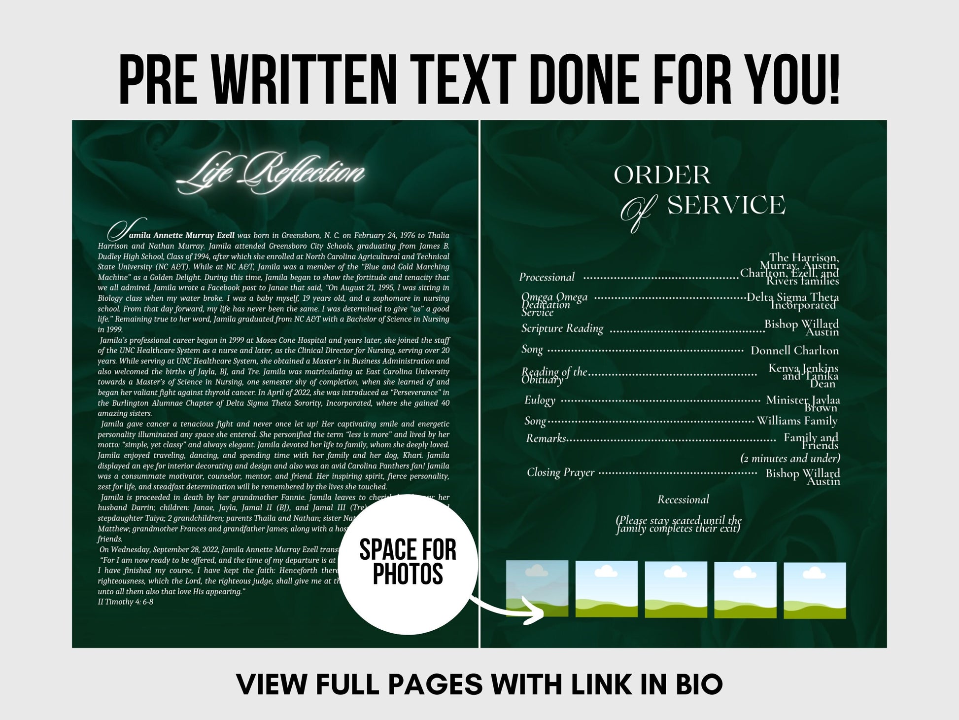 8.5"x11" BOOKLET Memorial program (4 pages)| Green Funeral Program |Celebration of Life |Keepsake |Digital Download |Canva Template