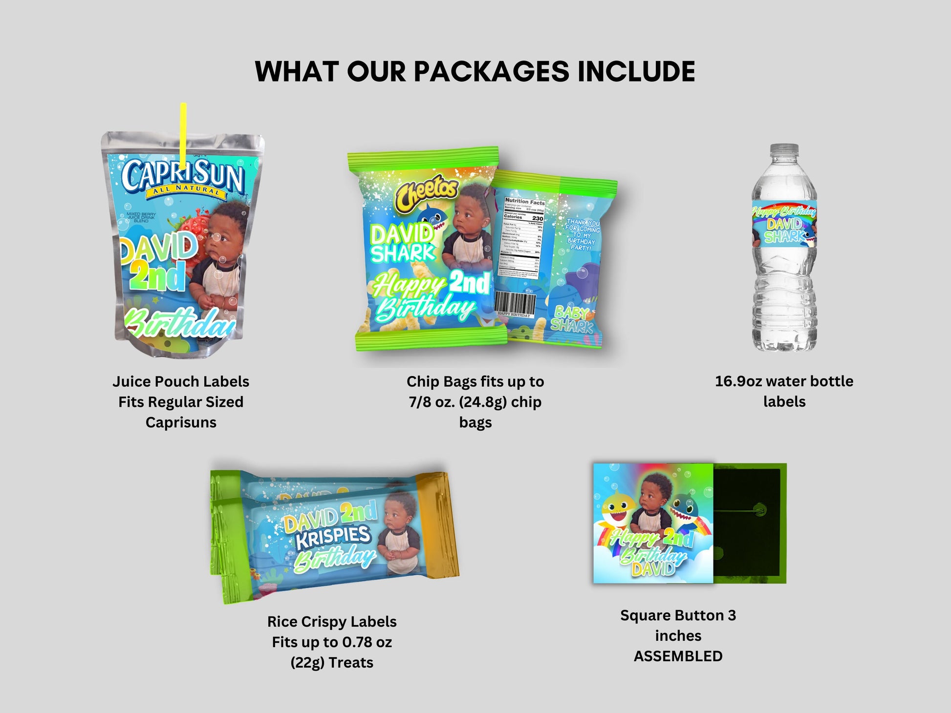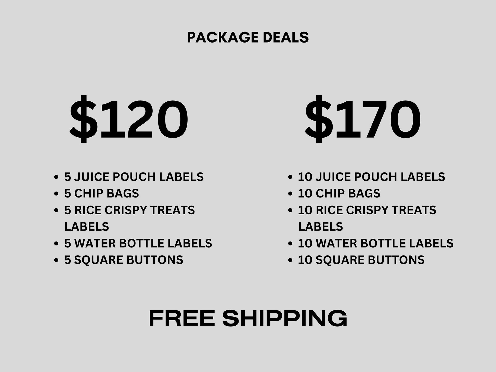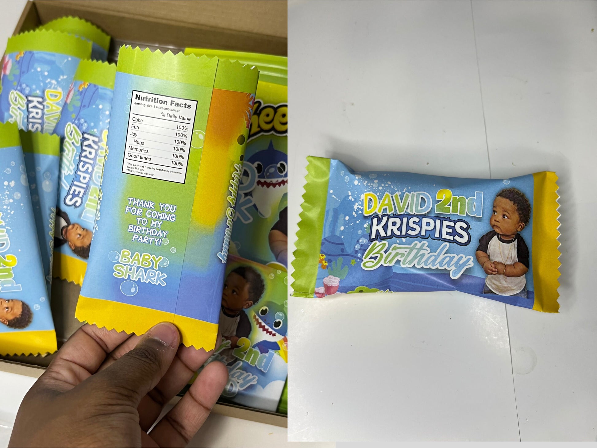 Introducing our Custom Birthday Party Favors Package, the ultimate must-have for any celebration! This remarkable package includes custom chip bags, custom rice crispy treats, personalized caprisuns, and square buttons. Perfectly suited for birthday-themed parties, baby showers, and more, this package is a guaranteed hit at your next occasion!