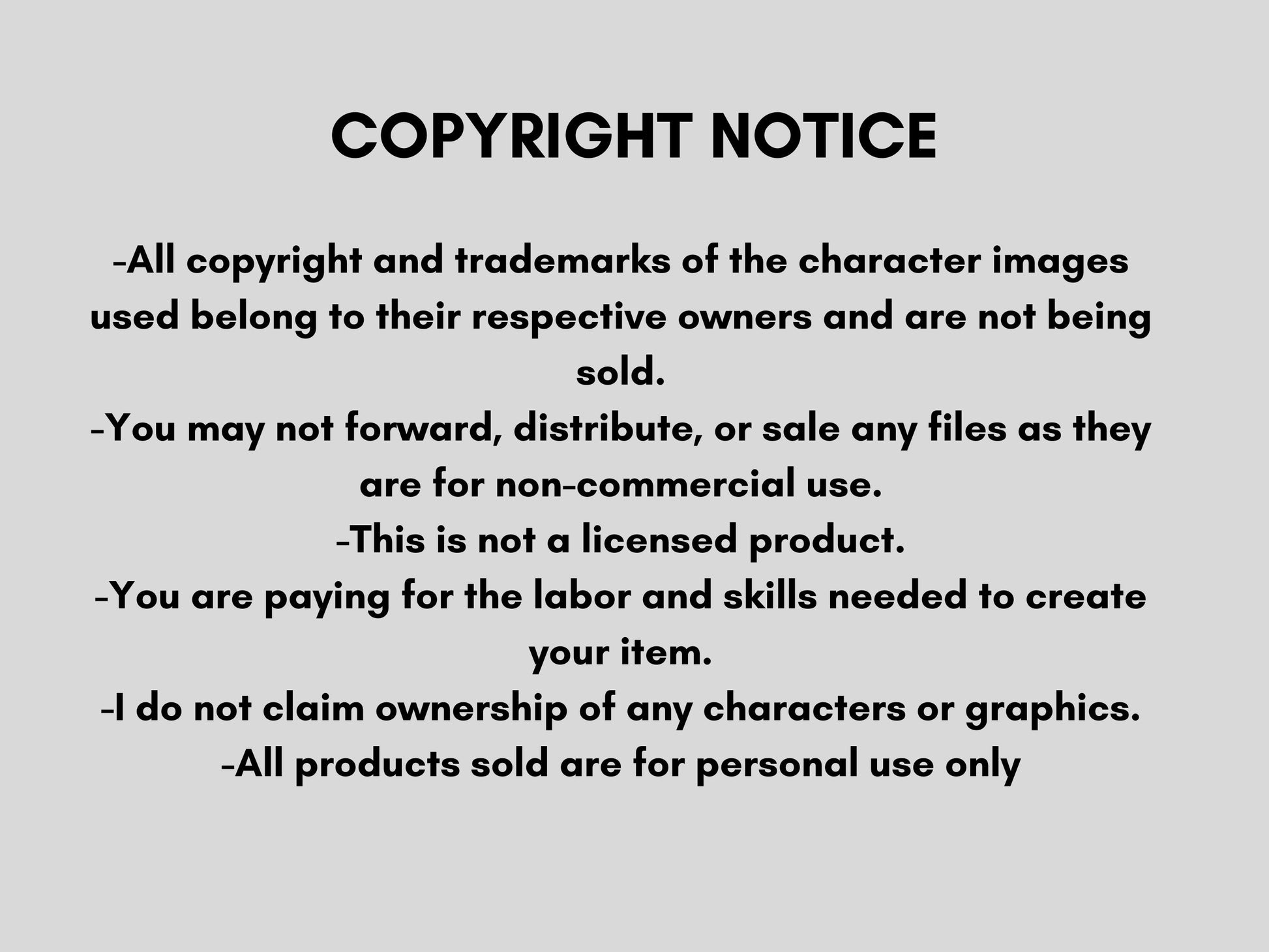 -All copyright and trademarks of the character images used belong to their respective owners and are not being sold.